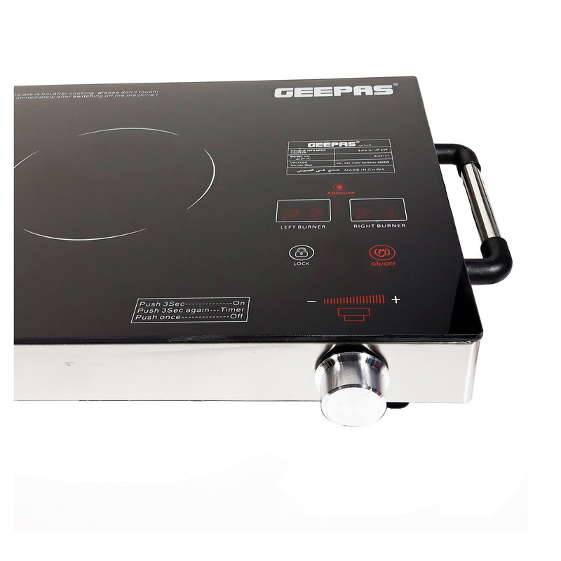 شرکت جی پاس GEEPAS با عرضه بیش از 1500 کالا در زمینه لوازم برقی و خانگی و … بیش از 37 سال است که در آسیا و اروپا و قاره آمریکا فعالیت مستمر دارد.اجاق گاز مادون قرمز ( Infrared) یا بعبارتی اجاق برقی القایی مدل GIC6131 با دارا بودن صفحه شیشه ای مشکی یک دست بسیار مقاوم به حرارت بطور یکدست در بالای اجاق ، تنها حرارت را در محدوده دایروی که با خط چین نیز مشخص شده است ایجاد می کند و در بقیه مناطق صفحه دما کاملا با دمای محیط یکسان است .می توان هر گونه ظرفی را برروی دستگاه قرار داده و دمای حرارت ساطع شده را می توان با دو ولوم دیجیتال و صفحه نمایش است که می توان دما را برای هر دو شعله تنظیم و پایش کرد . دستگاه دارای تایمر نیز می باشد که با نگه داشتن بمدت 3 ثانیه فعال می شود . کل عملیات کنترل بر روی پنل دستگاه بطور کامل لمسی است . توان حرارتی دستگاه برای یک شعله 1800وات و برای شعله دیگر 800 وات است. می باشد .با روشن شدن دستگاه فن آن به کار می افتد و بعد از خاموش کردن دستگاه نیز تا هنگام خنک شدن کامل دستگاه جهت جلوگیری از آسیب رسیدن به دستگاه و یا کاربر ، فن کار می کند و بطور خودکار خاموش می شود پس دستگاه را تا هنگام خاموش نشدن فن از برق نباید خارج کرد .دستگاه دارای 3 شاخه خارجی مجهز به فیوز داخلی جهت حفاظت از شبکه برق خانگی و همچنین دستگاه برخوردار است.