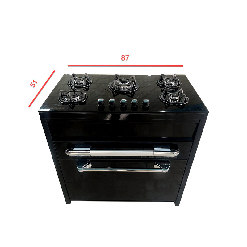اجاق گاز طرح فر شیشه مشکی 8 میل مقاوم تا 700 درجه سانتیگراد ضد خش ضد لک است.