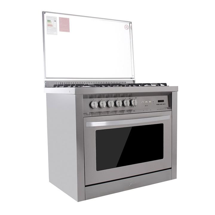 شیشه درب فر به صورت سه جداره و مقاوم در برابر حرارت بوده، همچنین دارای شیشه محافظ روی گاز می باشد. -
