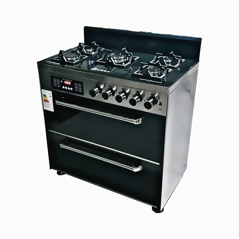 اجاق گاز 5 شعله بوگر مدل 908 استیل تمام ترموکوپل با ولوم های از جنس فلزی و سنگین
