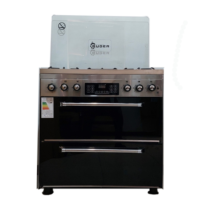 اجاق گاز پنج شعله بوگر تمام استیل تمام ترموکوپل کد910 تمام ترموکویل(تاپ تایم یا صفرثانیه) گرید انرژی A شاسی دار فندک اتوماتیک تایمر دیجیتالی صفحه استیل از استیل با کد304نگیر خشدار و روکش دار میباشد سایر موارد استیل کاری شده از استیل ضد زنگ با کد 430 خش دار روکش دار میباشد ضمنا این اجاق گاز مجهز به شاسی جدا از بدنه میباشد به طوری که اگر یکی از بدنه ها بر اثر جابجایی آسیب ببیند با کمترین هزینه قابلیت تعویض دارد
