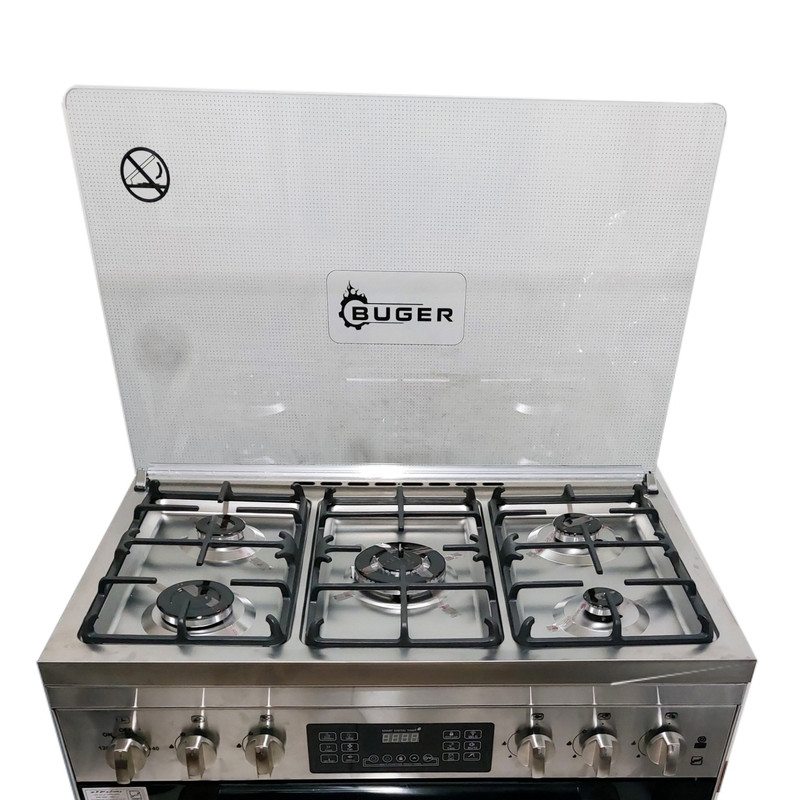 اجاق گاز پنج شعله بوگر تمام استیل تمام ترموکوپل کد911 پلاس تمام ترموکوپل(تاپ تایم یا صفرثانیه) گرید انرژی A شاسی دار فندک اتوماتیک تایمر دیجیتالی صفحه استیل از استیل با کد304نگیر خشدار و روکش دار میباشد سایر موارد استیل کاری شده از استیل ضد زنگ با کد 430 خش دار روکش دار میباشد ضمنا این اجاق گاز مجهز به شاسی جدا از بدنه میباشد به طوری که اگر یکی از بدنه ها بر اثر جابجایی آسیب ببیند با کمترین هزینه قابلیت تعویض دارد ولوم های از جنس زاماک یا سرب خشک و دستگیره فلزی ترکیب استیل و آلومینیوم درب پایین کشو دارد و جنس آن از MDFدرجه یک میباشد واز ریل خارجی بهره میبرد.