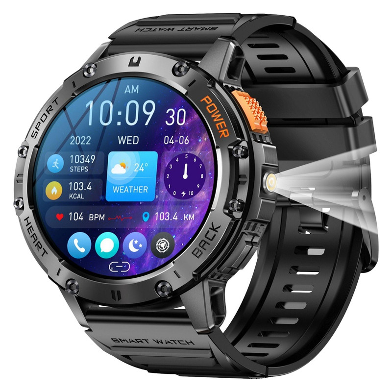 بدنه مستحکم فلزی اژ آلیاژ روی . صفحه نمایش بزرگ 1.43 اینچی آمولد با وضوح تصویر بسار بالای 466*466 همچنین باتری بزرگ 530 میلی آمپری با قابلیت استفاده 7 تا 10 روز مداوم و 30 روز در حالت استند بای و همچنین داشتن یک چراغ قوه کار امد و نور قابل قبول از ویژگی های قابل توجه این مدل است.