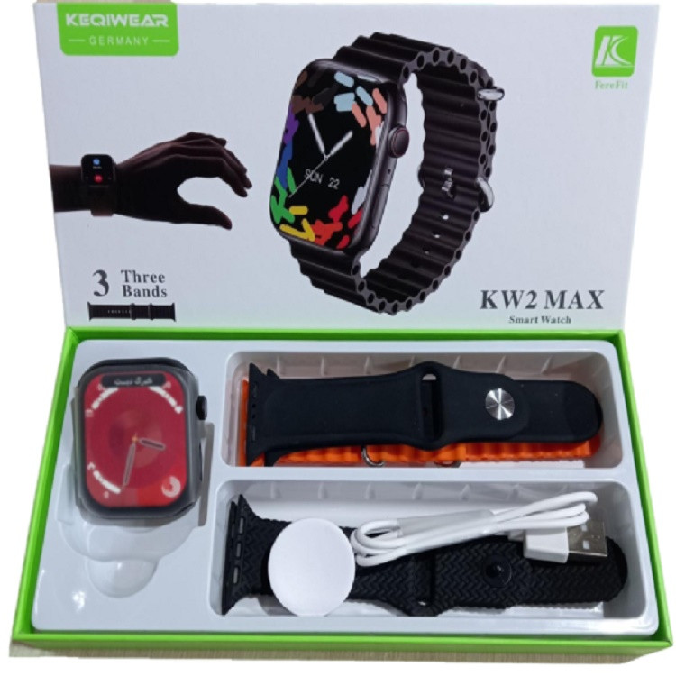 ساعت هوشمند مدل KW2 MAX دارای صفحه مستطیل شکل با بدنه ظریف در ابعاد صفحه 49 میلیمتری است. دارای 2 دکمه روی بدنه: (دکمه magic button، دکمه خاموش و روشن) است. قابلیت ارتباط بلوتوثی با گوشی هوشمند و قابلیت ارتباط با سیستم عامل های ios و Android را دارد. پایشگرهای سلامتی – پزشکی از جمله سنسور پایش ضربان قلب، سنسور پایش فشار خون، سنسور پایش اکسیژن خون، سنسور سنجش کیفیت خواب، سنسور سنجش دمای بدن، سنسور سنجش قند خون را دارد. پایشگرهای ورزشی(سنجش میزان کالری سوزانده شده، دارای سنسور گام شمار، اندازه گیری مدت زمان ورزش، پایش ضربان قلب، مسافت پیموده شده) را دارد. پایشگر ورزشی دو میدانی، پیاده روی، پرش، دوچرخه سواری، کوهنوردی، بسکتبال، بدمينتون و پینگ پنگ را دارد. دارای آیکن های ماشین حساب، انواع زبان های زنده دنیا، زبان فارسی را ساپورت می‌کند، یافتن گوشی هوشمند، قابلیت تنظیمات صدا و ویبره، قابلیت تنظیمات نور صفحه، کنترل عکس برداری از راه دور گوشی هوشمند، کنترل پخش موزیک گوشی هوشمند و قابلیت بارگذاری پس زمینه برای قسمت نمایش آیکن ها، قابلیت تنظیمات ساعت و زمان، قابلیت قفل و پسورد را دارد. دارای انواع پس زمینه متنوع، نمایش آب و هوا، تقویم و تاریخ و دارای کرنومتر است. قابلیت پخش سریع آیکن ها مانند گوشی هوشمند را دارد. قابلیت ارائه گزارش فعالیت ها و سلامتی و نمایش آیکن ها در 4 مدل مختلف را دارد. قابلیت برقراری تماس تلفنی بلوتوثی نمایش پیام ها و نوتیفیکیشن های گوشی هوشند را دارد. دارای گرافیک بالا و کیفیت و طیف رنگی و سرعت بالا است. ساعت هوشمند مدل KW2 MAX از اپلیکیشن ساعت هوشمند Lefun Health app است.
