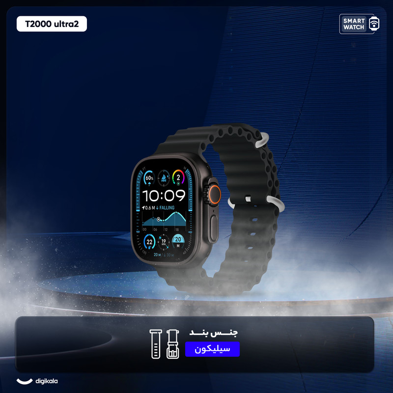 ساعت هوشمند مدل T2000 ultra2 دارای قابلیت های صفحه نمایش رنگی، صفحه نمایش لمسی بند سیلیکون