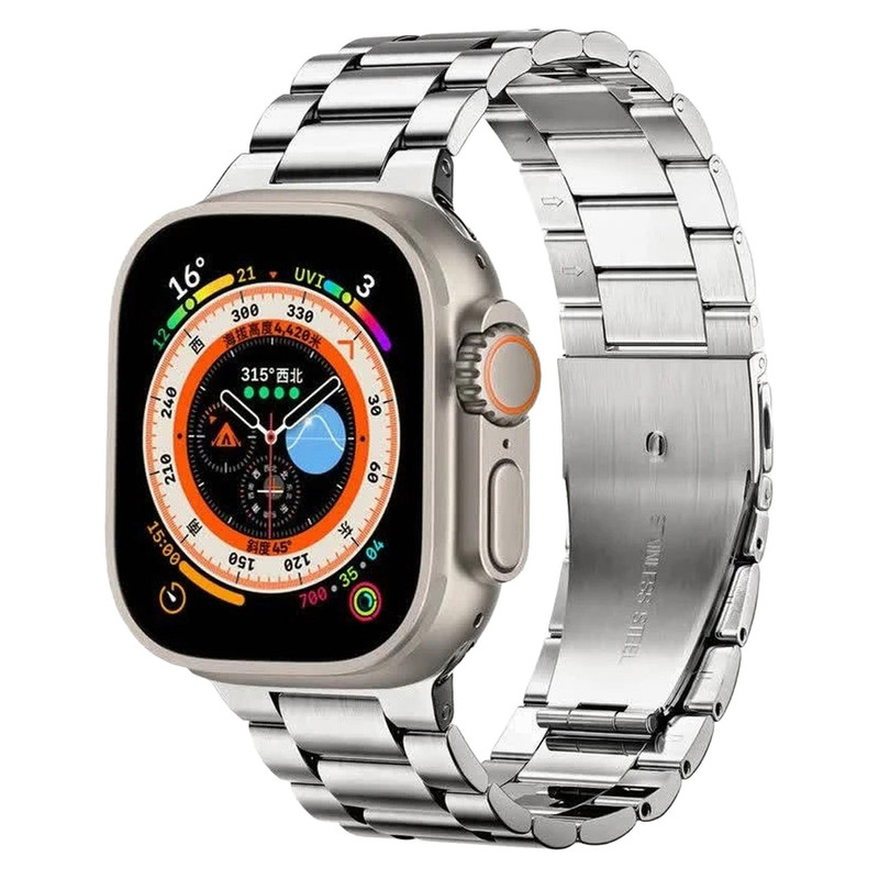 ساعت هوشمند مدل Ultra 7 in 1 strap دارای قابلیت های صفحه نمایش رنگی، صفحه نمایش لمسی، کنترل موسیقی (Music Player)، قابلیت مکالمه از طریق بلوتوث، قابلیت تغییر طرح ساعت یا تم بند فلز