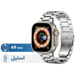 ساعت هوشمند مدل watch ultra دارای قابلیت های صفحه نمایش رنگی، صفحه نمایش لمسی، کنترل موسیقی (Music Player)، کنترل سطح اکسیژن خون، قابلیت مکالمه از طریق بلوتوث بند فلز