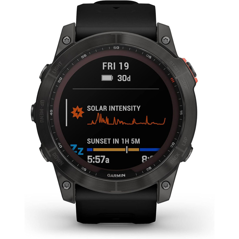 ساعت هوشمند گارمین مدل Fenix 7x SOLAR دارای قابلیت های صفحه نمایش لمسی , کنترل موسیقی (Music Player) , کنترل سطح اکسیژن خون، بند سیلیکون