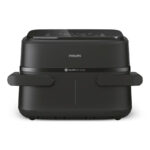 از آنجایی که این سرخ کن دارای دو محفظه پخت بوده می توان درون هر محفظه مواد غذایی یکسان یا متفاوت را قرار داده و آماده کرد. شما می توانید زمان های پخت را به طور خودکار در 2 کشو همگام سازی کنید تا هر دو غذای شما با هم آماده سرو شوند. هنگام آشپزی با این سرخ کن دو سبدی فیلیپس در مقایسه با فر سنتی، تا 40٪ سریع تر بپزید و تا 75٪ در مصرف انرژی صرفه جویی کنید. سیستم خاموش شدن خودکار ایمنی دستگاه را افزایش داده و همچنین احتمال سوختن را به شدت کاهش می دهد.