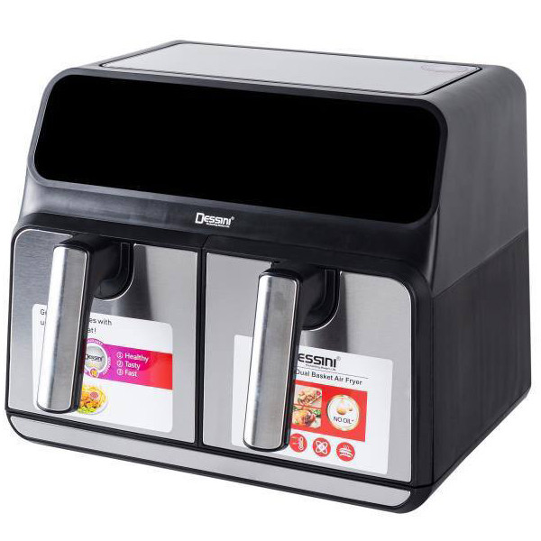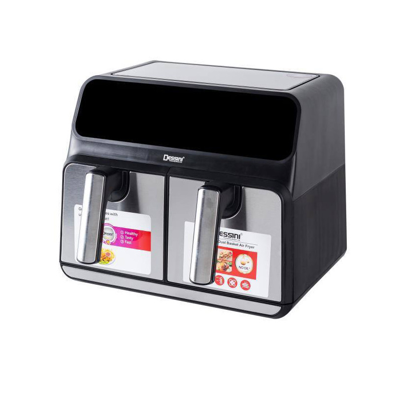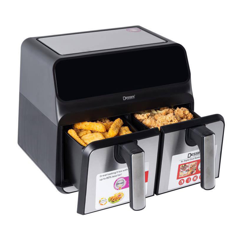 حجم کلی 8 لیتر دارای دو کابین به ظرفیت 4، این محصول دارای تنظیمات مجزا برای هر سبد میباشد، و دارای 10 برنامه پیش فرض شامل: 1.پخت سیب زمینی 2.گوشت و گریل 3.مرغ 4.پیتزا 5.کیک،شیرینی،کوکی 6.ماهی7.یخ زدایی 8.برنامه مخصوص سبزیجات و میوه 9.میگو 10.نان ، دارای ترموستات قابل تنظیم از 60 تا 200 درجه سانتی گراد و تایمر قابل تنظیم 1 ساعته، داخل کابین ها دارای سبد روغن گیر کف کابین، امکان پخت دو غذا با دما و زمان متفاوت