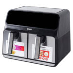 اولین ویژگی جذاب این محصول دوقلو بودن آن است. بنابراین شما قادر به استفاده ی مجزا از این محصول هستید. هرکدام از مخزن های این دستگاه 4 لیتر گنجایش داشته که جمعا 8 لیتر می شود. دارا بودن دو مخزن جداگانه خیلی بیشتر به کار می آید تا یک مخزن بزرگ داشتن. جنس بدنه ی این محصول از پلاستیک مرغوب ساخته شده و همچنین جنس داخلی آن از روکش نچسب بوده که هیچ تاثیری بر روی غذا ها نمی گذارد. همچنین غذا های در حال طبخ به قسمت های داخلی دستگاه نمی چسبد. پنل این سرخ کن لمسی بوده و با استفاده از آن شما قادر به انتخاب گزینه هایی همچون یخ زدایی، دما، تایمر، انتخاب برنامه های از پیش تعیین شده و …. هستید.