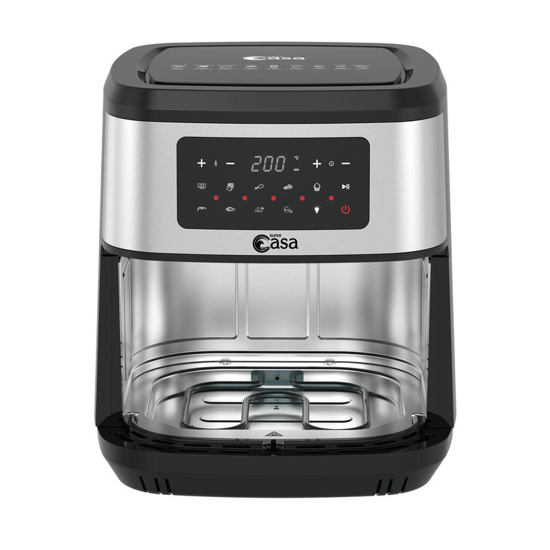 سوپر کاسا یکی از برندهای معتبر در زمینهی تولید لوازم خانگی و برقی است که چندین سال است در این حوزه فعالیت میکند. یکی از محصولات بینظیر این کمپانی، سرخ کن های بدون روغن است که در مدلهای مختلفی تولید شده است. سرخ کن های بدون روغن با تزریق هوای داغ و گردش آن در داخل محفظه، سبب آماده شدن و مغز پخت شدن غذاها میگردد. این سرخکن ها مصرف روغن را 80-90 درصد کاهش میدهند و سلامت بدن شما را برای عمری طولانی تضمین میکنند. سرخ کن بدون روغن دیجیتال دو المنته casa-8592 یکی از محصولات کمپانی سوپر کاسا است که سبب کاهش 80 درصدی مصرف روغن شده و غذاها را با میزان مصرف بسیار پایین یا بدون روغن سالم آماده میکند. سرخ کن دارای توان مصرفی 1800 وات است که باعث آماده شدن غذاهای دلخواه شما در زمانی کوتاه میشود. گنجایش مخزن این سرخ کن 9.2 لیتر است که به کمک آن میتوانید دوستان یا خانواده را به صرف یک وعده غذای لذیذ دعوت نمایید. پنل کنترلی این دستگاه به صورت لمسی طراحی شده است و با یک لمس غذاهای مورد علاقهی شما را آماده میکند. سرخ کن بدون روغن دیجیتال دو المنته CASA-8592 دارای سیستم تایمر و تنظیم دما است که با تغییر آن میتوانید زمان و دمای غذای خود را تنظیم کنید. هواپز بدون روغن دیجیتال سوپر کاسا دارای طراحی بدنهی منحصر به فردی بوده که از جنس پلاستیک محکم و استیل ساخته شده و از دوام و ماندگاری بالایی برخوردار است.