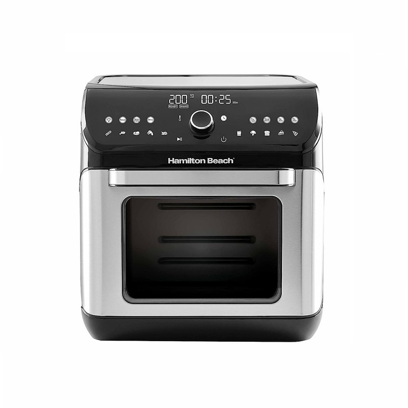 اگر بدنبال یک دستگاه کامل جهت پخت انواع مواد غذایی بدون نیاز به روغن در سریع ترین زمان ممکن هستید پیشنهاد ما به شما سرخ کن بدون روغن همیلتون بچ مدل AF1212-ME میباشد که میتوان از مهم ترین ویژگی این محصول سه کاره بودن دستگاه که علاوه بر کار سرخ کن بدون روغن کار دستگاه آون توستر (فر برقی) و دستگاه میوه خشک کن را انجام میدهد نیز اشاره کرد، گنجایش این محصول 12 لیتر میباشد که علاوه بر قرار گرفتن یک مرغ کاملا درسته در قسمت جوجه گردان میتوانید بصورت همزمان از سه طبقه دستگاه جهت پخت مختلف مواد غذایی استفاده بفرمایید، از ویژگی های دیگر این دستگاه میتوان به 10 منوی پخت اتومات و 4 برنامه از پیش تنظیم شده اشاره کرد، وجود لوازم جانبی بسیار کاربردی در استفاده هر چه راحت تر از این محصول به شما کمک میکند،