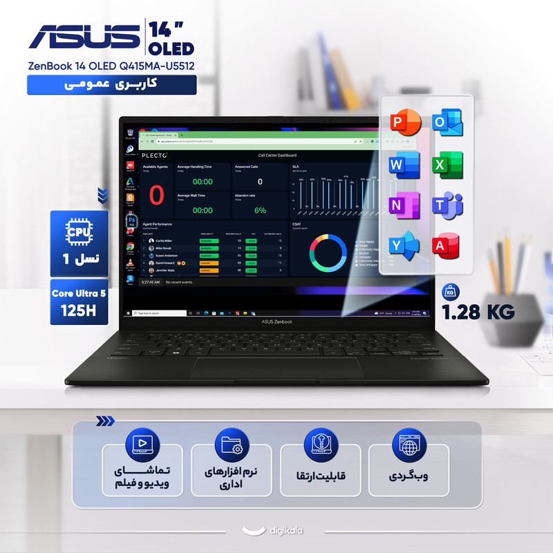 لپ تاپ 14 اینچی ایسوس مدل ZenBook 14 OLED Q415MA-U5512-Core Ultra 5 125H-8GB LPDDR5-512GB SSD-Touch