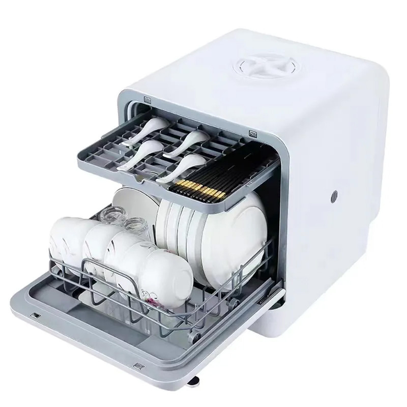 سیستم استریلیزاسیون UV برای ضدعفونی کامل ظروف / خشک‌کن هوای گرم با گردش یکنواخت به‌منظور خشک شدن سریع و ایمن ظروف / مخزن آب 5 لیتری داخلی قابل استفاده بدون اتصال به آب شهری / طراحی کم‌صدا و کم‌مصرف مناسب برای آپارتمان / پاشش آب تحت فشار یکنواخت با بازوی چرخان
