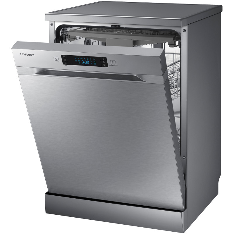 ماشین ظرفشویی سامسونگ DW60M5070FS رنگ نقره ای یکی از ماشین ظرفشویی های تولید شده توسط شرکت سامسونگ در سال 2017 و مونتاژ کشور چین است. در واقع این محصول برای اولین بار در سال 2017 تولید و معرفی شده است اما برخی فروشگاه ها به اشتباه آن را تولید سال 2019 یا 2020 می دانند که درست نیست و این تاریخ مربوط به سال مونتاژ آن است. این محصول ممکن است در بازار با مدل ماشین ظرفشویی سامسونگ DW60 معرفی شود که اشتباه است. همچنین برخی فروشگاه ها ممکن است این ماشین ظرفشویی را به عنوان ماشین ظرفشویی سامسونگ 5070 و یا ماشین ظرفشویی سامسونگ M5070FS معرفی کنند که آن ها نیز مدل کامل این محصول نیستند و همان طور که گفته شد مدل کامل آن DW60M5070FS است که روی برچسب محصول نیز می توانید آن را مشاهده کنید. این محصول بزرگ بوده و ظرفیت کافی برای شستشوی ظروف 14 نفر را دارد و می توانید به راحتی آن را به عنوان ماشین ظرفشویی روکار و یا توکار در آشپزخانه خود به کار ببرید. ماشین ظرفشویی 14 نفره سامسونگ DW60M5070FS برای ارائه بهترین عملکرد، از موتور دیجیتال اینورتر (Digital Inverter) برخوردار است. از مهم ترین ویژگی های این نوع موتور، تولید صدای بسیار کم در حین کار کردن و قدرت بالا در شستشو می باشد. این ماشین ظرفشویی 3 سبد یا طبقه دارد که شستشوی هر نوع ظرفی با هر اندازه و جنسی را امکان پذیر می کند. طبقه بالای طراحی شده در این محصول مخصوص شستشوی قاشق و چنگال است که این امکان را به شما می دهد که بدون ایجاد به هم ریختگی و شلوغی، آن ها را به صورت جداگانه بشویید و کاملا تمیز در اختیار داشته باشید. این طبقه همچنین قابلیت انعطاف پذیری دارد و می توانید آن را خم کرده و راحت تر ظروف خود را در آن قرار دهید. طبقه میانی این محصول برای قرار دادن ظروف کوچک و متوسط مانند کاسه و پیش دستی طراحی شده است. شاخک های کوچکی نیز در این طبقه تعبیه شده اند که می توانید ظروف خود را بین آن ها قرار دهید و همچنین از پایه های نگهدارنده لیوان های پایه دار برای جلوگیری از شکستن و یا لب پر شدن آن ها استفاده کنید. طبقه پایینی این محصول نیز مختص ظروف بزرگ تر مانند ماهیتابه و سینی طراحی شده تا بتوانید آن ها را نیز به راحتی بشویید. ماشین ظرفشویی سه سبد سامسونگ DW60M5070FS دارای 7 برنامه شستشوی مختلف برای تمیز کردن هر نوع ظرفی با هر میزان کثیفی می باشد که در ادامه به معرفی آن ها می پردازیم. این محصول دارای برنامه Auto Wash می باشد و به کمک آن میزان کثیفی و چربی ظروف قرار داده شده در ماشین ظرفشویی را تشخیص داده و با دما و میزان آب متناسب با آن عمل شستشو را انجام می دهد. همچنین دارای برنامه Quick Wash بوده تا در کوتاه ترین زمان ممکن ظرف هایتان شسته شود. البته باید در نظر داشته باشید که این برنامه مناسب ظرف های بسیار چرب و کثیف نیست و همچنین در انتهای دور شستشو، ظرف ها را خشک نمی کند. در نتیجه سامسونگ در ساخت این محصول از برنامه Express استفاده کرده تا بتوانید علاوه بر شستشوی سریع، ظرف ها را پس از خشک شدن در اختیار داشته باشید. اگر ظرف های شما بسیار کثیف و چرب باشند، می توانید برنامه Intensive را انتخاب کرده و از تمیزی ظروف پس از پایان شستشو مطمئن باشید. محصول یاد شده مجهز به برنامه Eco بوده و به شما این امکان را می دهد که با صرفه جویی در مصرف آب و انرژی به شستشوی ظروف خود بپردازید و آن ها را خشک نمایید. اگر نمی خواهید ظرف های خود را بلافاصله پس از سرو غذا بشویید، می توانید آن ها را با آب سرد و با استفاده از برنامه Pre Wash به صورت سریع آبکشی نمایید تا ذرات غذا به ظروف نچسبند و شستشوی آن ها آسان تر شود. همچنین در ساخت این محصول از برنامه Delicate استفاده شده و می توانید به کمک آن ظروف شیشه ای و ظریف خود را بدون آسیب دیدن بشویید. ماشین ظرفشویی سامسونگ 5070 رنگ نقره ای مجهز به گزینه ها و قابلیت های بیشتری نیز می باشد که به شستشو و خشک کردن بهتر ظروف کمک می کند. یکی از این قابلیت ها Half Load نام دارد که به شما این امکان را می دهد که بدون نیاز به پر کردن کامل محفظه ماشین ظرفشویی