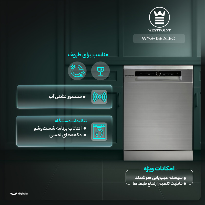 ماشین ظرفشویی 15 نفره وست پوینت مدل WYG-15824.EC