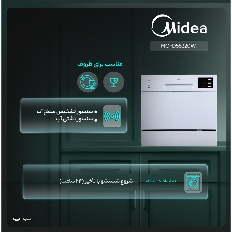 ماشین ظرفشویی مایدیا مدل MCFD55320W یک گزینه مناسب برای خانوادههای کمجمعیت یا افرادی است که به دنبال دستگاهی جمعوجور و کارآمد هستند. این ماشین ظرفشویی از نوع رومیزی بوده و با ظرفیت شستوشوی ظروف ۶ نفره، امکان شستوشوی ظروف روزانه را بدون نیاز به مصرف بالای آب و انرژی فراهم میکند. طراحی ساده و در عین حال مدرن آن با بدنهای از جنس استیل و فضای داخلی استیل ضدزنگ، علاوه بر زیبایی، دوام و بهداشت بیشتری را تضمین میکند.
