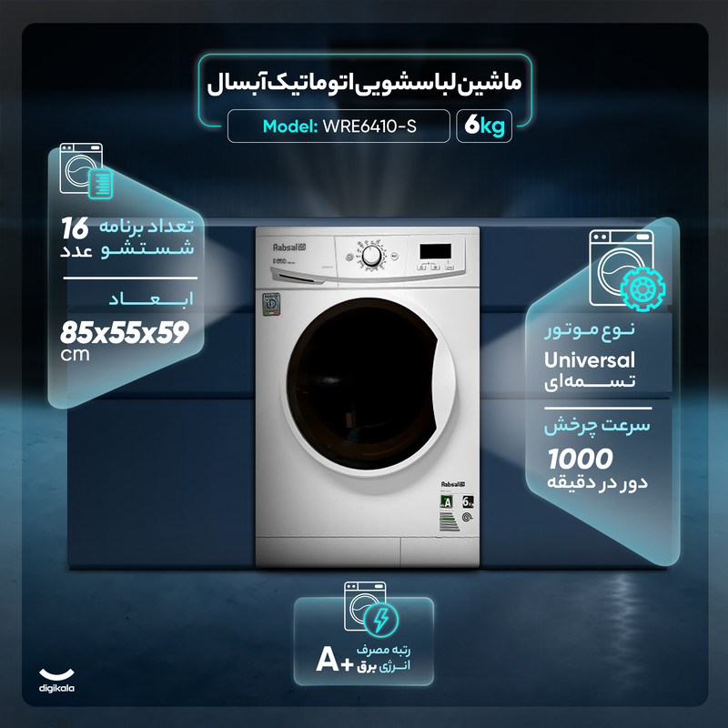 ماشین لباسشویی اتوماتیک آبسال مدل WRE6410-S ظرفیت 6 کیلوگرم