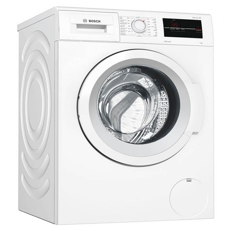 ماشین لباسشویی 7 کیلو بوش مدل WAJ2017SGC/2017 با رده انرژی +++A جزء لباسشویی های کم مصرف و پر طرفدار شرکت بوش میباشد. لباسشویی 2017 دارای ظرفیت 7 کیلوگرم بوده که مناسب برای خانواده هایی با جمعیت متوسط میباشد. طراحی دیگ به صورت موجدار بوده که موجب شستشوی آرام و کارآمد البسه میشود. پنل این لباسشویی دارای نمایشگر دیجیتال ، کلید های تنظیم عملکرد و ولوم چرخشی برای تنظیم برنامه ی شستشو میباشد. برنامه های شستشو شامل شستشوی الیاف نخی با دما های 20 ، 40 ، 60 و 90 درجه ، شستشوی اقتصادی با دمای 40 و 60 درجه ، شستشوی الیاف ظریف ، پشمی ، ملحفه و شستشوی سریع 15 دقیقه ای میباشد.