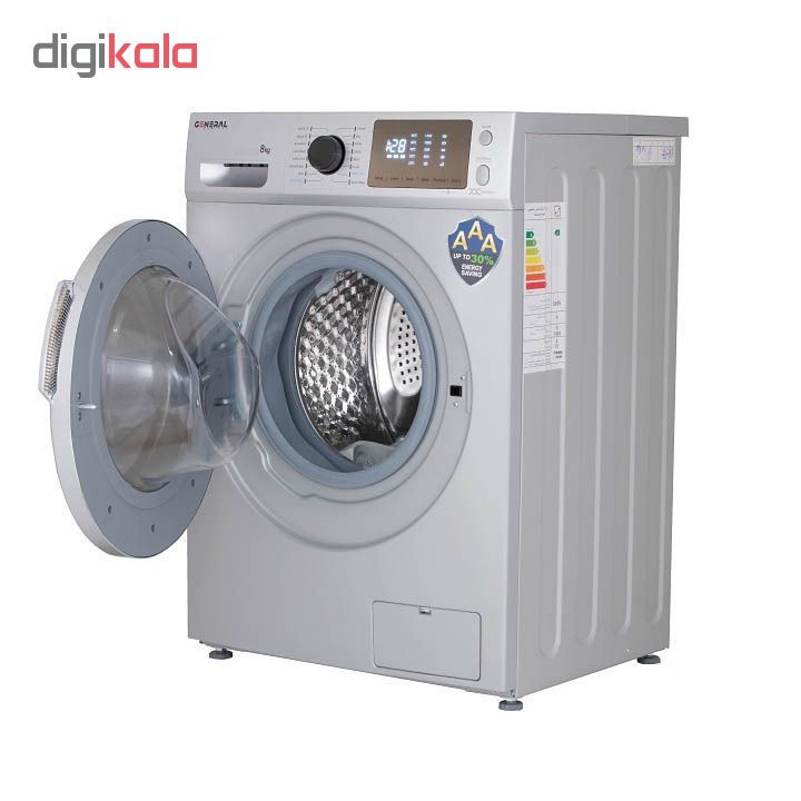 ماشین لباسشویی « جنرال آدمیرال» مدل « FMB 4815 » با ظرفیت 8 کیلوگرم از سری ماشین لباسشوییهای درب از جلو محسوب میشود. این ماشین به نمایشگر لمسی مجهز شده است. این نمایشگر اعمال تغییرات را برایتان آسانتر کرده است. اگر قصد تهیه ماشین کممصرف دارید این کدل گزینه مناسبی است. ماشین لباسشویی یکی از پر مصرفترین لوازم برقی است. همین باعث شده تا این مدل با کسب رتبه انرژی +++A در دسته ماشینهای کممصرف قرار بگیرد. میزان مصرف برق این محصول 0.835 کیلو وات ساعت و میزان مصرف آب آن 45. لیتر است. برای بالاتر رفتن کارایی این ماشین، این کالا به 16 برنامه برای شستشو مجهز شده است. از نمونههای این برنامهها میتوان به شستشوی هوشمند با برنامه اتوماتیک، شستشوی هوشمند با برنامه اتوماتیک اشاره کرد. در این مدل شما امکان انتخاب دما بین 30 ، 40، 60 و 90 را دارید. اگر زمانی فراموش کردید لباسی را برای شستشو در ماشین بیاندازید، نگران نباشید، این مدل قابلیت اضافه کردن لباس حین کار را دارد.
