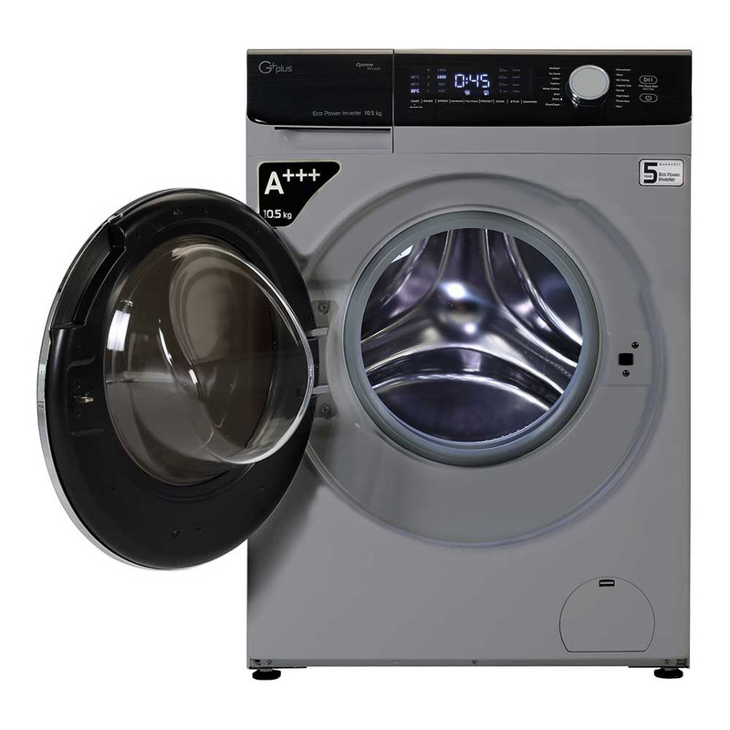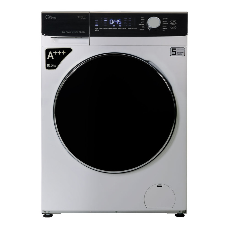 ماشین لباسشویی جی پلاس مدل GWM-P104T ظرفیت 10.5 کیلوگرم میتواند جوابگوی تمامی نیازهای یک خانواده حتی پرجمعیت برای شستوشو لباسها باشد. شما با این ماشین لباسشویی میتونید بهراحتی پتوهای دونفره و مقدار بسیار زیادی لباس را بشویید. این ماشین لباسشویی دارای ظرفیت 10.5 کیلوگرمی است که در رنگ سفید به شما عرضه میشود. این مدل دارای درب بزرگ تیره رنگ است که زیبایی چشمگیری را به آن بخشیده است. لباسشویی GWM-P104T دارای مصرف انرژِی +++A است که بسیار اقتصادی و در عین حال قدرتمند عمل میکند. سرعت چرخش 1400 دور در دقیقهای دارد. این مدل لیست متنوعی از برنامهها را دارد که متناسب با جنس لباسها قابل انتخاب هستند. تعداد برنامههای اصلی این مدل 16 برنامه اصلی بههمراه 9 برنامه تکمیلی شستوشو است. ویژگی بسیار مهم ماشین لباسشویی جی پلاس مدل GWM-P104T ظرفیت 10.5 کیلوگرم اضافه کردن لباس در حین شستوشو است. این دستگاه لباسشویی دارای قابلیتهای بسیار مهم و کاربردیای از جمله برنامه اختصاصی شستوشو لباسهای زیر (Lingerie Care)، برنامه شستوشو سریع (Go Quick)، قابلیت ضدآلرژی، برنامه اختصاصی شستوشو لباسهای زمستانی، Timer و مجهز به برنامه Ozone Wash برای ضدعفونی کامل لباسها بدون نیاز به آب و مواد شوینده است که برای سلامتی شما میتواند بسیار مهم و کارا باشد.