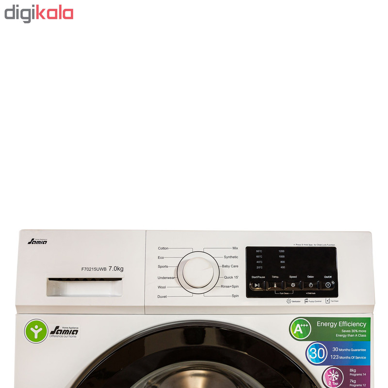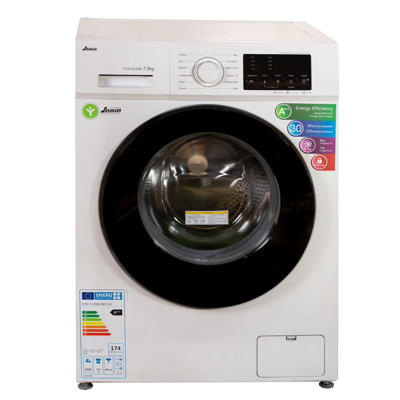 ماشین لباسشویی «سامیا» مدل «F70215UWB» با ظرفیت 7 کیلوگرم از دستگاههای بسیار کارآمد، زیبا و باکیفیت عرضهشده در بازار لوازم خانگی است. این ماشین لباسشویی در گروه دستگاههای درب از جلو قرار میگیرد که درب آن به صورت بشقابی تخت و زیبا میباشد. ماشین لباسشویی سامیا مدل F70215UWB دارای دو ورودی آب سرد و گرم است تا در مصرف انرژی صرفهجویی کند. درِ دستگاه مانند اکثر ماشین لباسشوییها به سمت چپ باز میشود و ابعاد استاندارد دستگاه امکان نصب در فضای بین کابینتها را ممکن میسازد. ظرفیت این دستگاه 7 کیلوگرم بوده و میتواند برای یک خانوادهی متوسط مفید واقع شود. این دستگاه با داشتن 14برنامهی شستشو تنوع عملکرد بالایی را در اختیار کاربر میگذارد. دیگ برجسته در این مدل به شستوشوی بهتر و دوام بیشتر دیگ و همچنین لباسها کمک میکند. سیستم لکهبری و شستوشوی طراحی شده در این لباسشویی باعث شده تا کاربری دستگاه بهتر شود. محل اضافهکردن پودر و مواد شوینده در جایگاه مربوطه در کنار پیچ تنظیم است.