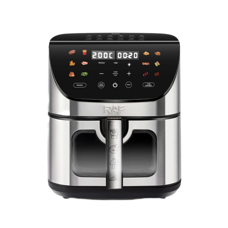 سرخکن راف مدل R.5295 با توان 1700 وات و طراحی مدرن، تجربهای سالم و لذتبخش از پختوپز را برای شما فراهم میکند. محفظه تمام استیل این دستگاه، علاوه بر دوام بالا، بهراحتی تمیز میشود. سبد 8 لیتری بزرگ همراه با پنجره شفاف و لامپ داخلی، امکان مشاهده روند پخت را در هر لحظه فراهم میکند.