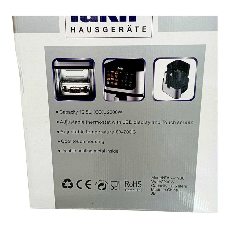 سرخکن بدون روفن فکربا ظرفیت بزرگ 12.5 لیتری و دارای 12 برنامه غذایی پخت اتوماتیک و دارای دوالمنت و سبد جدا شونده دارد و از همه مهمتر صفحه تبلتی با منو رنگی جذابیت بیشتری به این محصول میده و شما با یک اشاره میتوانید دما و زمان را به صورت دستی تنظیم کنید و انواع غذا و کیک و پیتزا و پفیلا و انواع مواد غذایی را درست کنید