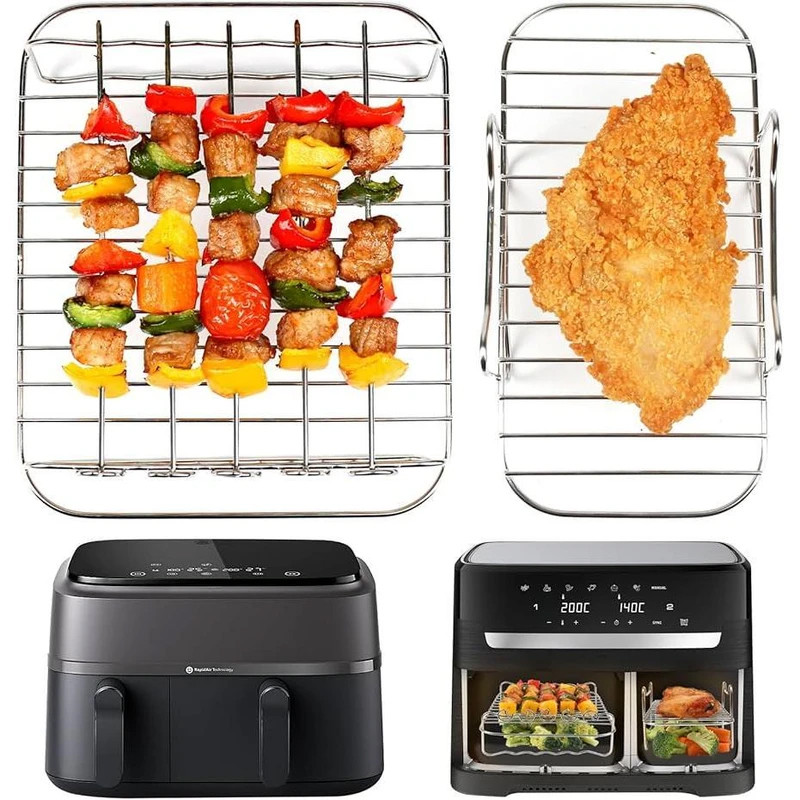 غذاها را با حداقل روغن، از بيرون ترد واز درون مغزيخت آماده مى كند. وجود دو سبد مجزا به شما امكان مى دهد تا دو نوع غذا را همزمان وبا تنظيمات جداكانه طبخ كنيد؛ بدون تداخل طعم وبو.