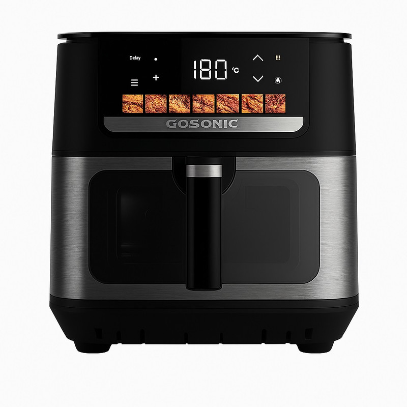 سرخکن بدون روغن گوسونیک مدل GAF-879 با ظرفیت ۹ لیتر، انتخابی حرفهای و کاربردی برای آشپزخانههای مدرن است. این دستگاه با طراحی زیبا، عملکرد قدرتمند و فضای داخلی بزرگ، امکان پخت انواع غذاهای خوشمزه را بدون نیاز به روغن فراهم میکند. توان مصرفی ۲۱۰۰ وات با دو المنت مجزا (۱۶۰۰ وات بالا و ۵۰۰ وات پایین) باعث پخت یکنواخت و سریع غذا میشود. فناوری گردش هوای Fry Force 360° به شما کمک میکند تا غذاهایی طلایی، ترد و سالم آماده کنید. نمایشگر دیجیتال لمسی با قابلیت تنظیم دما تا ۲۰۰ درجه سانتیگراد و ۸ برنامه پخت از پیشتنظیمشده، کنترل کامل فرآیند پخت را در اختیار شما قرار میدهد. قابلمه و سبد با پوشش سرامیکی، دسته قابل جدا شدن، قابلیت پخت همزمان دو لایه غذا، چراغ داخلی، سیستم محافظت در برابر داغ شدن بیش از حد و محفظه داخلی تمام فلزی از دیگر ویژگیهای این محصول هستند. سرخکن GAF-879 با ظرفیت بالا و امکانات