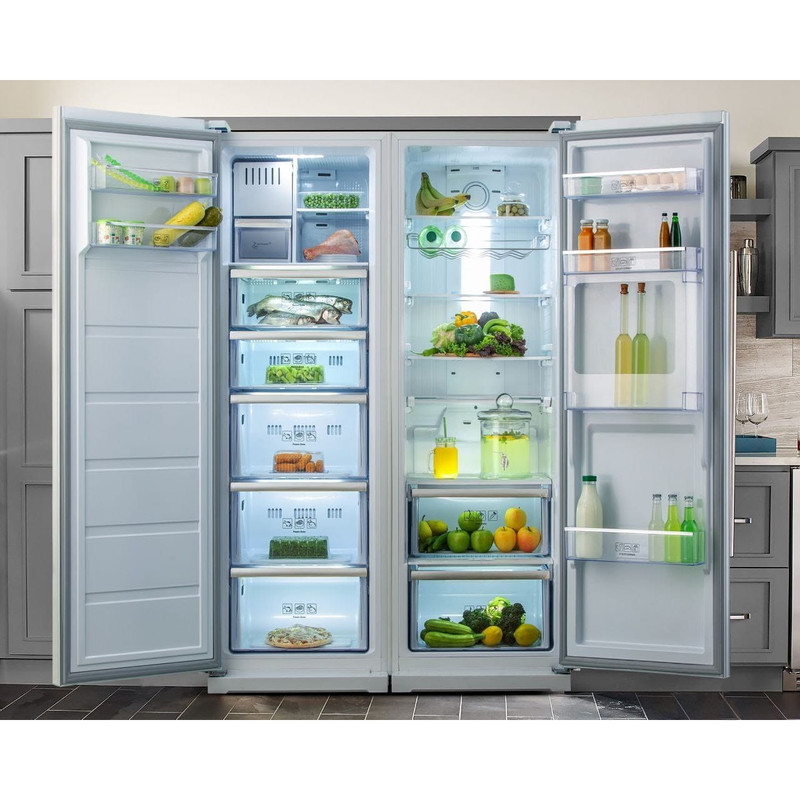 مجهز به نسل جدید کمپرسور های کم مصرف اینورتر / سیستم کندانسور مخفی ورق خود رنگ کره ای برای درب و کابین / مجهز به یخساز اتوماتیک