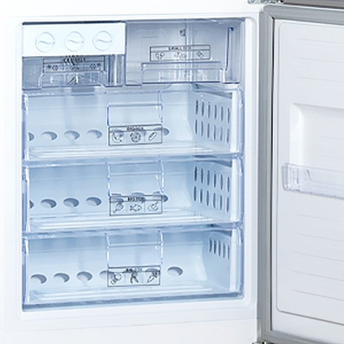 - امکانات اختصاصی یخچال: آبسردکن, اخطار باز ماندن درب, بدون برفک, دارای کشو با تنظیم دما و رطوبت, لامپ یخچال, نمایشگر